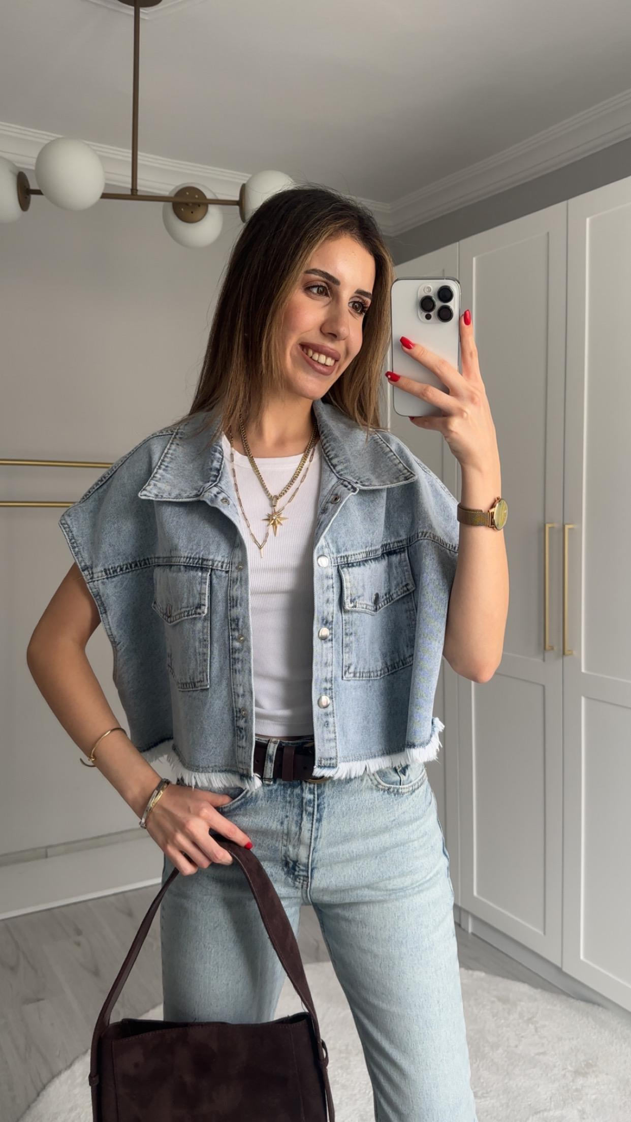 Oversize kalıptır. Crop yelektir.Tam kendi bedeninizi almanızı öneririz.