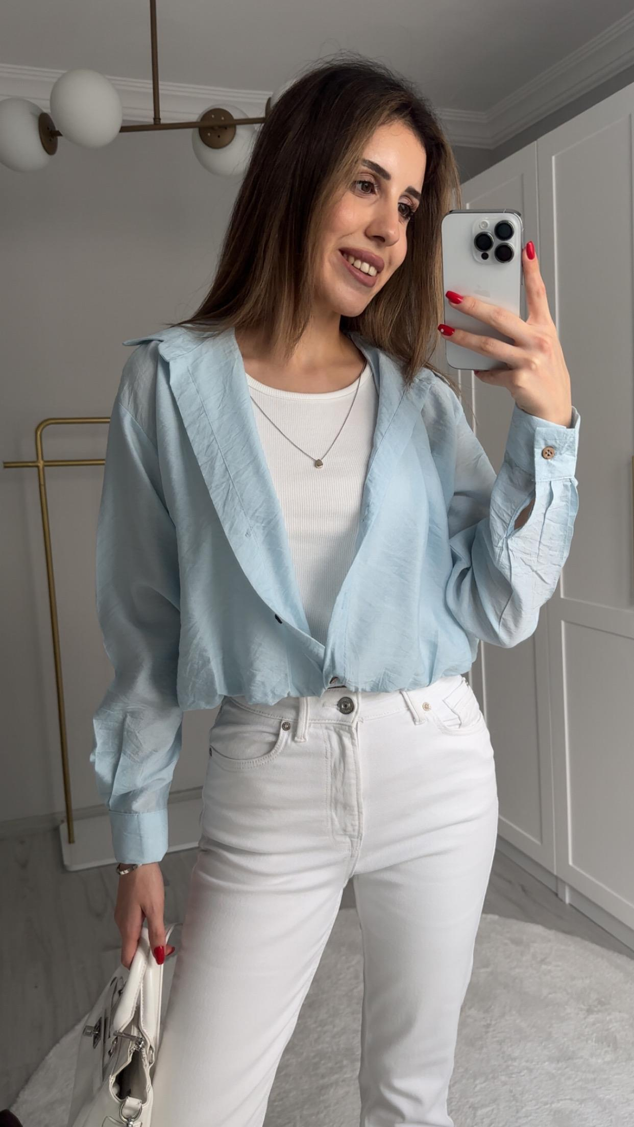 Yüksek belle giyilmesi gereken crop modeldir. İçindeki atleti, kolyesi ve gömleği tek parça halinde birleşiktir.
