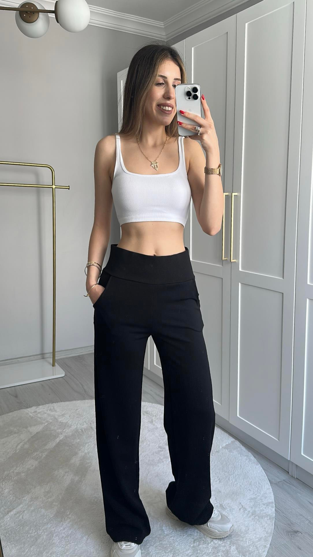 KORSAJ LİKRALI PALAZZO SİYAH PANTOLON